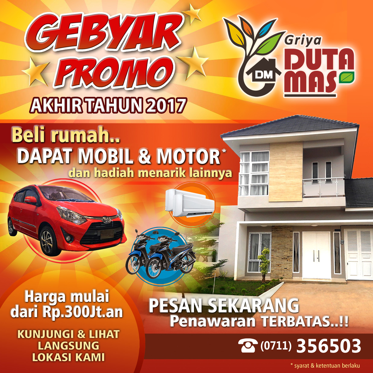 Gebyar Promo Griya Duta Mas diperpanjang hingga akhir tahun..!! Ayo manfaatkan kesempatan terbatas ini. Tunggu apalagi sebelum harga naik. Segera hubungi marketing kami, kunjungi dan lihat langsung lokasi perumahan kami....Selengkapnya