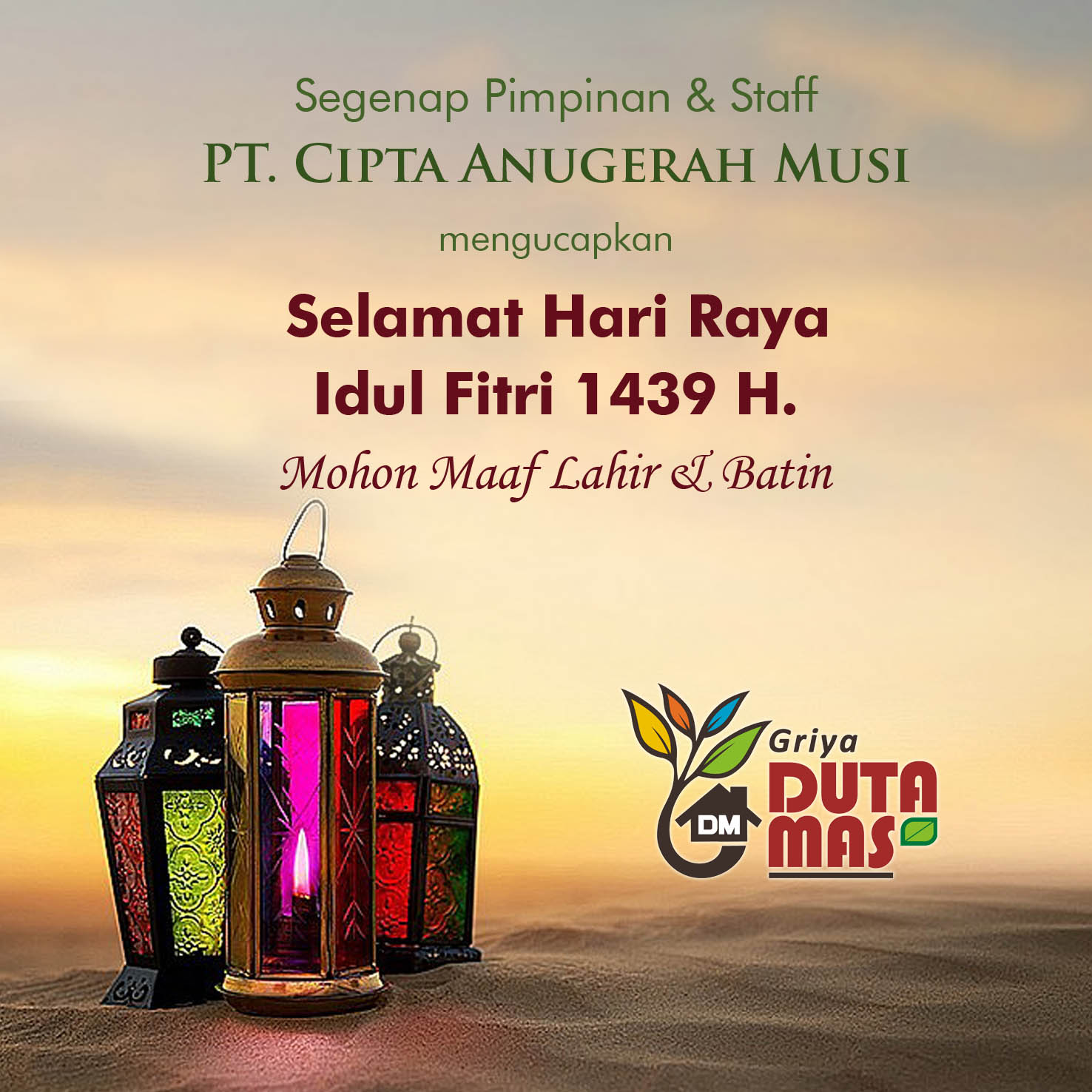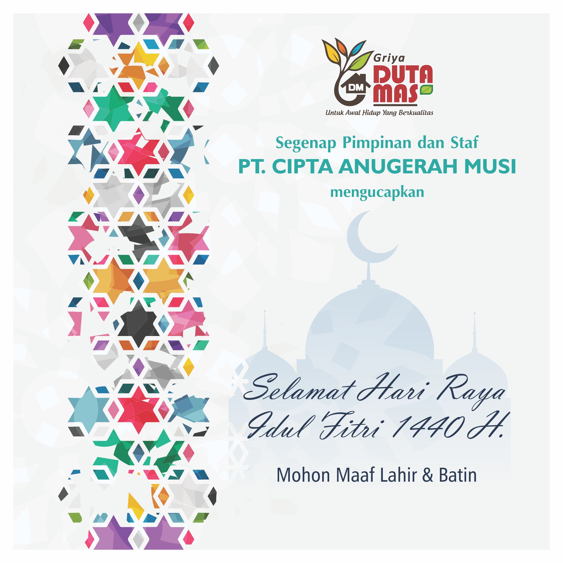 Segenap Pimpinan & Staff PT. Cipta Anugerah Musi mengucapkan Selamat Hari Raya Idul Fitri 1440 H. Mohon Maaf Lahir dan Batin....Selengkapnya