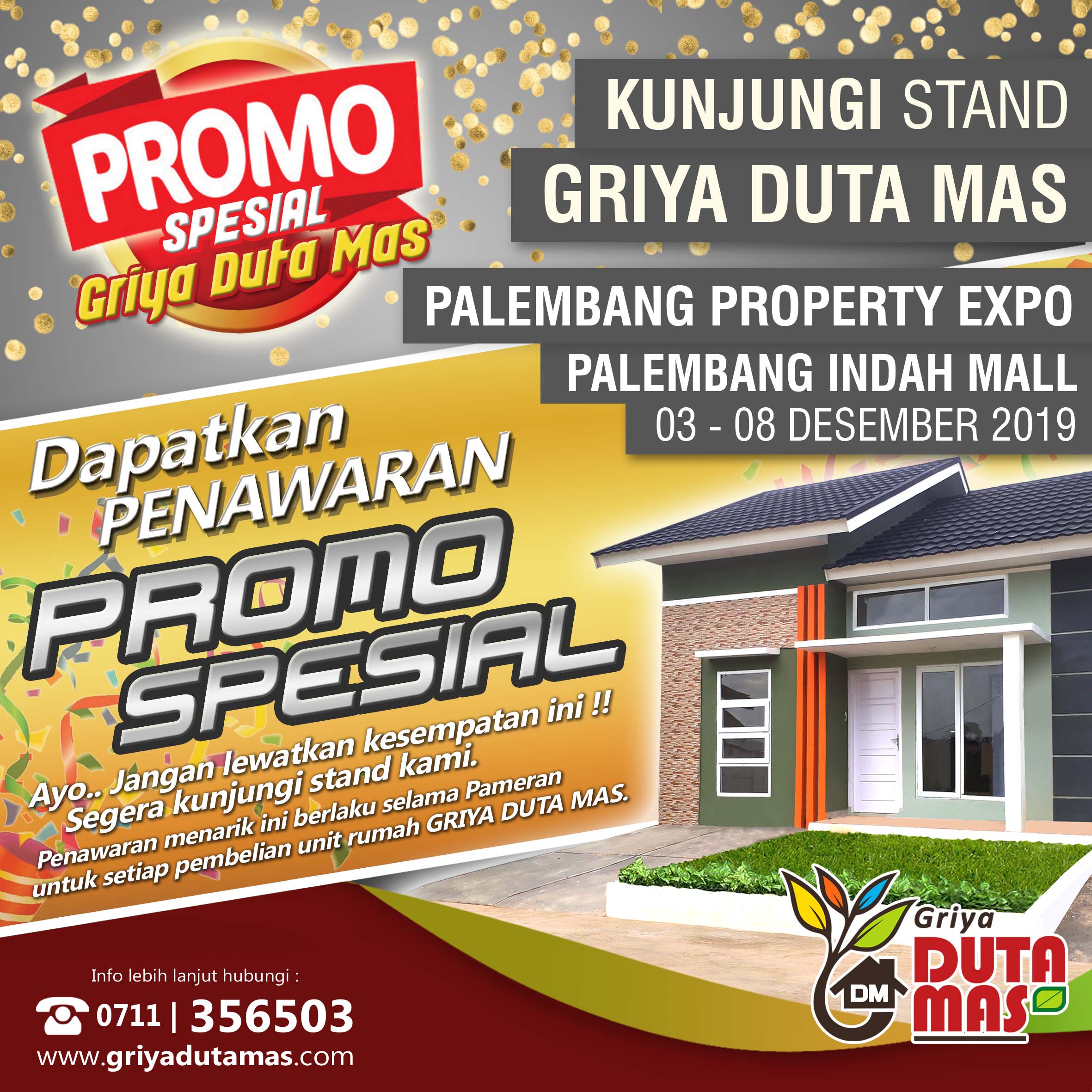 Ayo kunjungi stand kami di Palembang Indah Mall dalam acara PALEMBANG PROPERTY EXPO 2019. Dapatkan penawaran terbatas PROMO SPESIAL untuk setiap pembelian unit di Griya Duta Mas. Segera hubungi marketing kami untuk info lebih lanjut....Selengkapnya